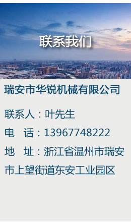 瑞安市華銳機械有限公司的誠信、實力和產(chǎn)品質(zhì)量獲得業(yè)界的認(rèn)可。歡迎各界朋友蒞臨參觀、指導(dǎo)和業(yè)務(wù)洽談......【查看詳情】